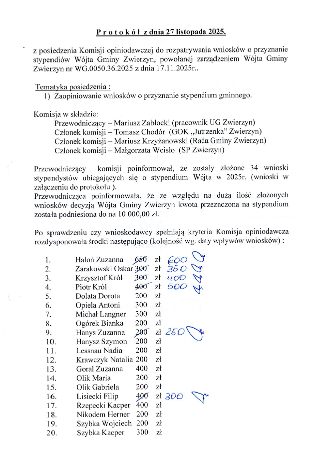 Protokół z posiedzenia Komisji opiniodawczej 27 listopada 2025