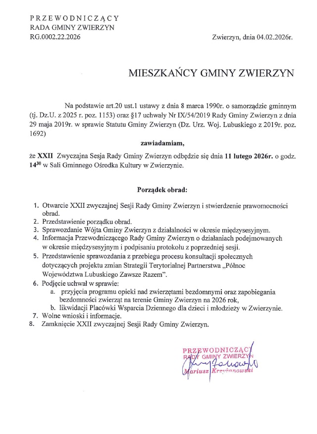 XXII Zwyczajna Sesja Rady Gminy 11 luty 2026
